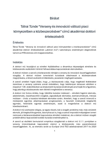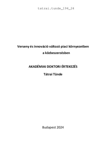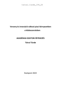 Tátrai, Tünde (2025) Verseny és innováció a közbeszerzésben. Doctor of the Hung. Acad. of Sci. thesis, BCE.