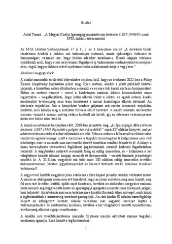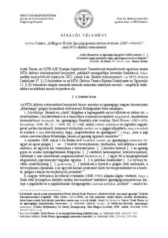 | Additional Information: | Doktori pályázat eljárásra bocsátva (2025. március 21.) Könyv címe és bibliográfiai adatai: "A Magyar Királyi Igazságügyminisztérium története (1867–1944/45)" (Iurisperitus Kiadó, Szeged, 2022) Nyilvános védés engedélyezve (2026. január 12.) |