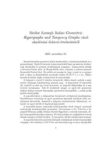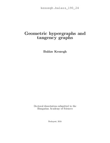 Keszegh, Balázs (2025) Geometriai hipergráfok és érintőgráfok = Geometric hypergraphs and tangency graphs. Doctor of the Hung. Acad. of Sci. thesis, HUN-REN Rényi Alfréd Matematikai Kutatóintézet.