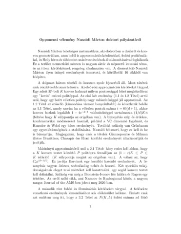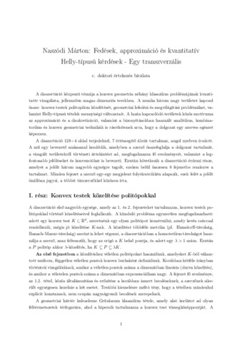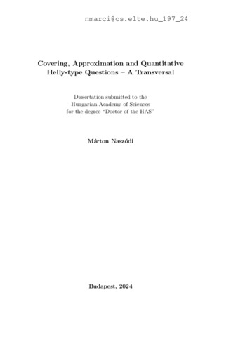 Naszódi, Márton (2025) Covering, Approximation and Quantitative Helly-type Questions -- A Transversal = Fedések, approximáció és kvantitatív Helly-típusú kérdések -- Egy transzverzális. Doctor of the Hung. Acad. of Sci. thesis, HUN-REN Rényi Alfréd Matematikai Kutatóintézet.
