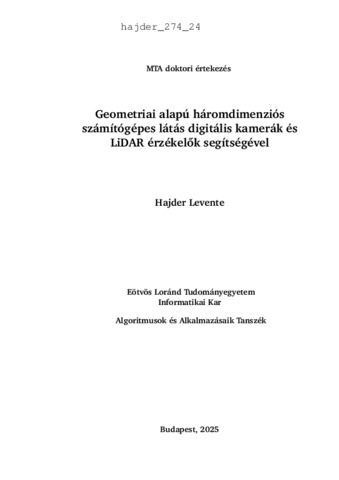 Hajder, Levente (2025) Geometriai alapú háromdimenziós számítógépes látás digitális kamerák és LiDAR érzékelők segítségével. Doctor of the Hung. Acad. of Sci. thesis, Eötvös Loránd Tudományegyetem.