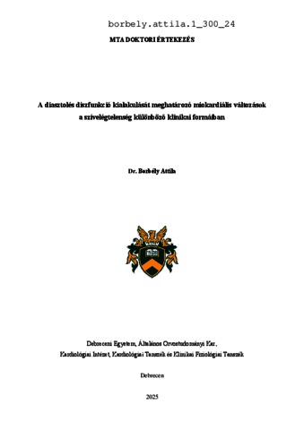 Borbély, Attila (2025) A diasztolés diszfunkció kialakulását meghatározó miokardiális változások a szívelégtelenség különböző klinikai formáiban. Doctor of the Hung. Acad. of Sci. thesis, Debreceni Egyetem.