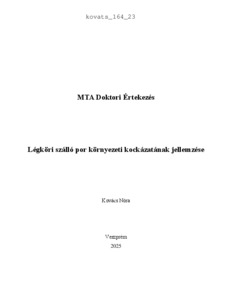Kováts, Nóra (2025) Légköri szálló por környezeti kockázatának jellemzése. Doctor of the Hung. Acad. of Sci. thesis, Pannon Egyetem.