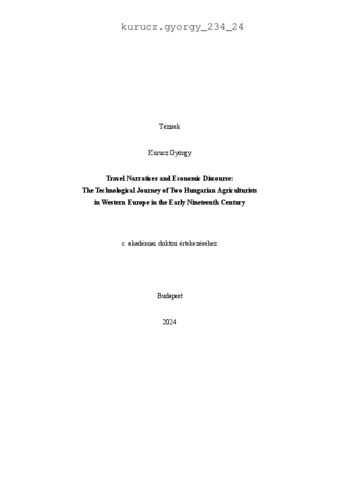 Kurucz, György (2025) Travel Narraives and Economic Discourse: The Technological Journey of Two Hungarian Agriculturists in Western Europe in the Early Nineteenth Century. Doctor of the Hung. Acad. of Sci. thesis, Károli Gáspár Református Egyetem.