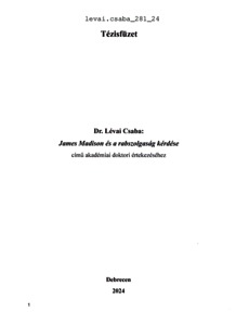 Lévai, Csaba (2025) James Madison és a rabszolgaság kérdése. Doctor of the Hung. Acad. of Sci. thesis, DE.