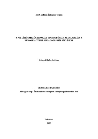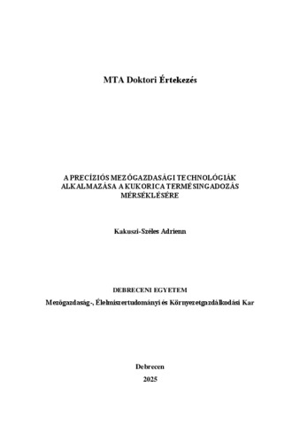 Széles, Adrienn (2025) A precíziós mezőgazdasági technológiák alkalmazása a kukorica termésingadozás mérséklésére. Doctor of the Hung. Acad. of Sci. thesis, Debreceni Egyetem.