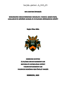 Hajdu, Péter (2025) Immunsejtek ioncsatornáinak vizsgálata: funkció, szabályozás, lokalizáció és működés normál és patológiás körülmények között. Doctor of the Hung. Acad. of Sci. thesis, Debreceni Egyetem.