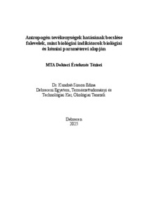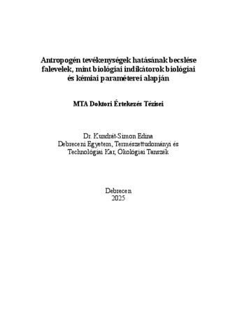 Kundrát-Simon, Edina (2025) Antropogén tevékenységek hatásának becslése falevelek, mint biológiai indikátorok biológiai és kémiai paraméterei alapján. Doctor of the Hung. Acad. of Sci. thesis, Debreceni Egyetem.