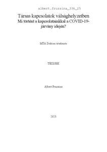 Albert, Fruzsina (2025) Társas kapcsolatok válsághelyzetben. Mi történt a kapcsolatainkkal a COVID-19-járvány idején? Doctor of the Hung. Acad. of Sci. thesis, ELTE TK.