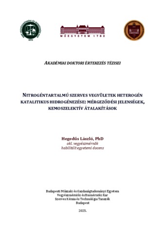 Hegedűs, László (2026) Nitrogéntartalmú szerves vegyületek heterogén katalitikus hidrogénezése: mérgeződési jelenségek, kemoszelektív átalakítások. Doctor of the Hung. Acad. of Sci. thesis, Budapesti Műszaki és Gazdaságtudományi Egyetem.