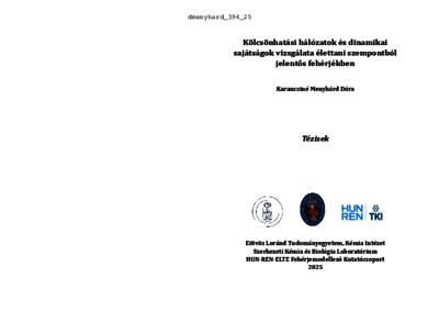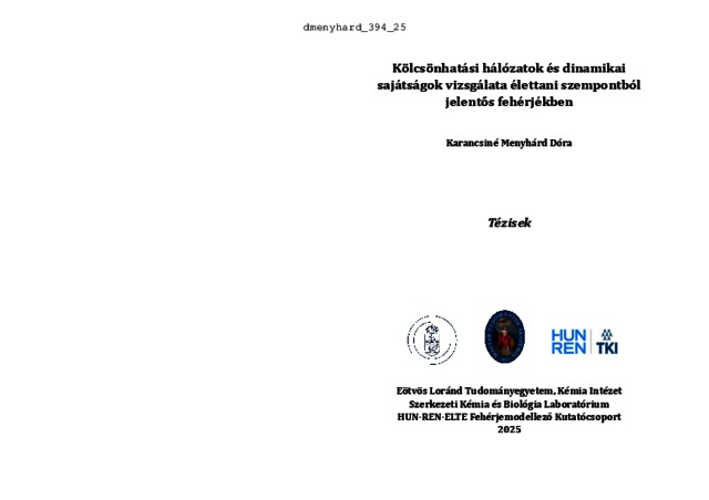 K. Menyhárd, Dóra (2026) Kölcsönhatási hálózatok és dinamikai sajátságok vizsgálata élettani szempontból jelentős fehérjékben. Doctor of the Hung. Acad. of Sci. thesis, Eötvös Loránd Tudományegyetem.